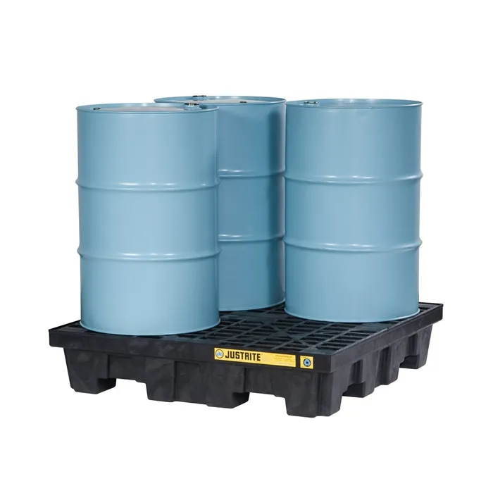 Justrite EcoPolyBlend™ Spill Control Pallet, 4 Drum Square, Recycled Polyethylene, Black – 28635