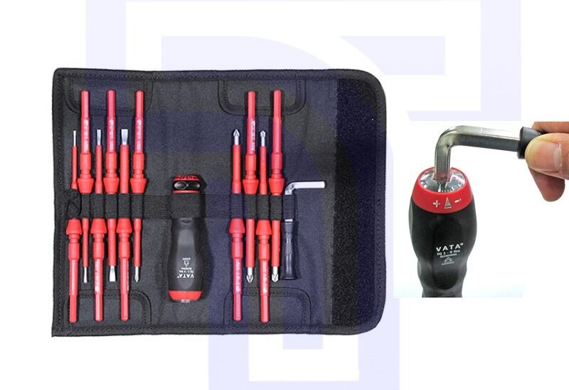 VATA’s 12pc VDE torque screwdriver kit for safe & precise electrical work. Certified for live-wire applications & ensures accurate torque.