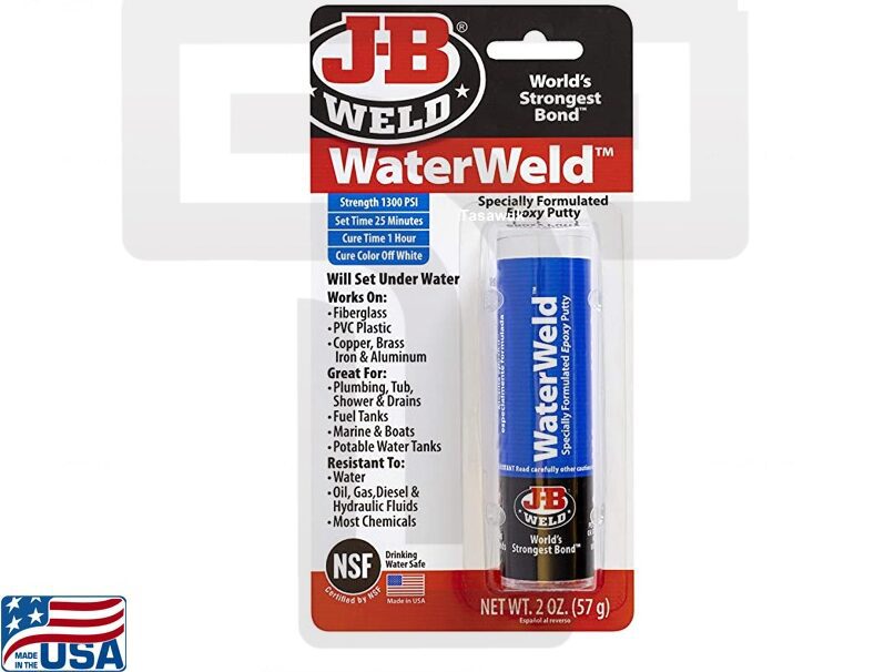 JB Weld Water Weld is a unique epoxy formulated to set and bond even when submerged underwater. This two-part epoxy creates a permanent and water-resistant seal, making it ideal for repairing leaks in pools, pipes, tanks, and other underwater applications. Water Weld sets in 25 minutes underwater, allowing for quick repairs without draining the water.