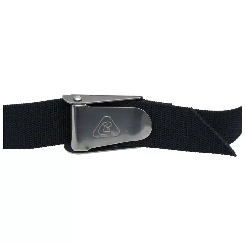 Strong woven nylon weight belt with stainless steel buckle. The quick-release stainless steel buckle provides instinctive and rapid emergency release.