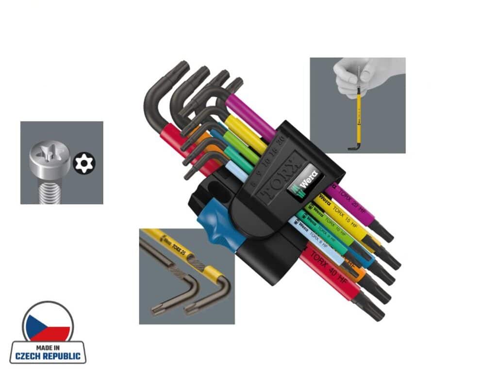 Wera’s 9pc Torx Allen key set tackles star-shaped fasteners with ease. T8-T40 sizes, ball end for angled access & durable steel for industrial use.