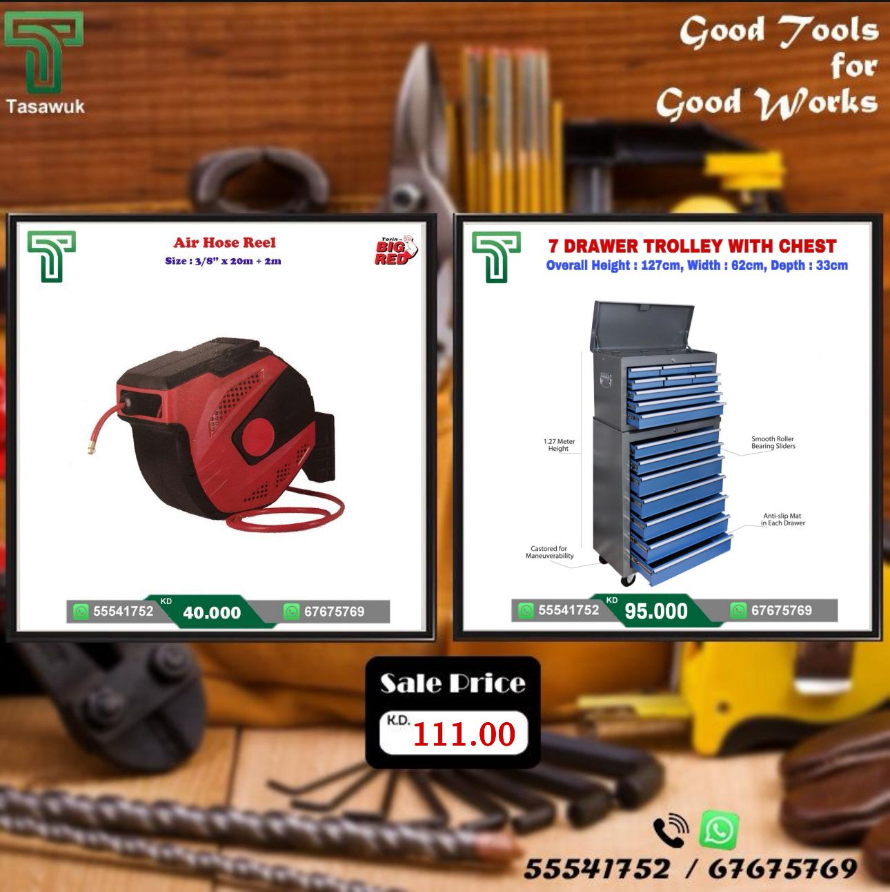 7 Drawer Trolley with 20m Air Hose Reel
