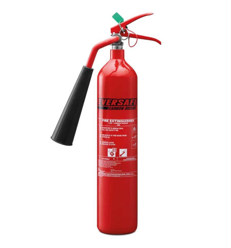 Eversafe 10kg Carbon DIoxide Fire Extinguisher with Wheels & Stand