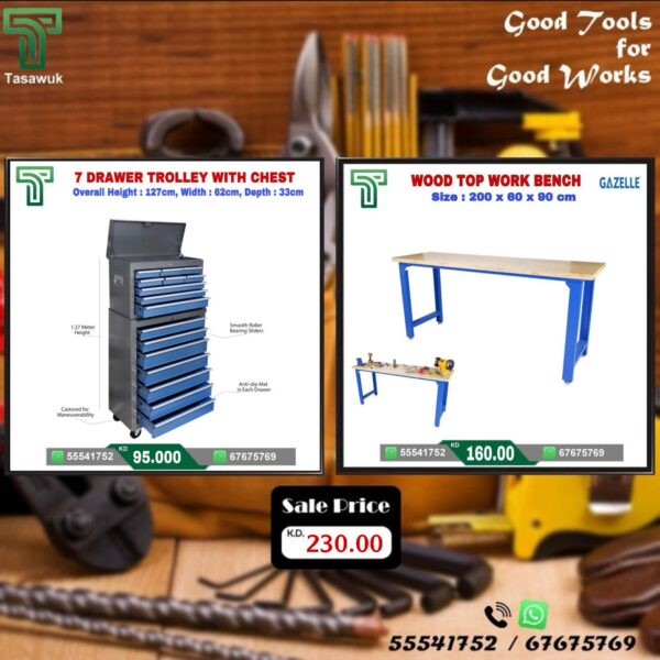 7 Drawers Trolley with Woodtop Workbench