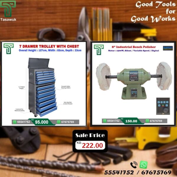 7 Drawer Trolley with Industrial Bench Polisher